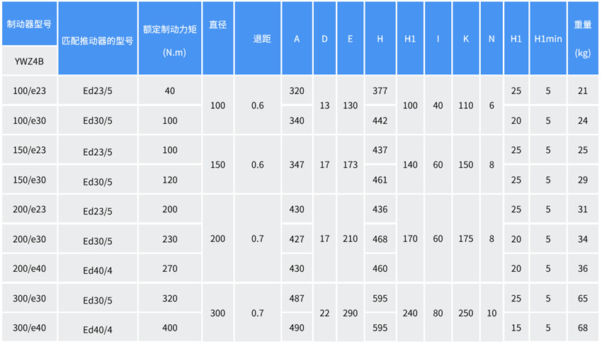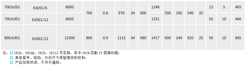 YWZ4B系列電力液壓鼓式制動器的安裝尺寸和制動力矩參數符合JB/ZQ4388-1997標準,其技術要求符合JB/T6406-2006標準。